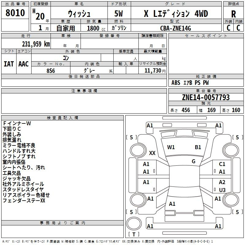 Toyota Wish, 2008 года - Лот№8010 ★R