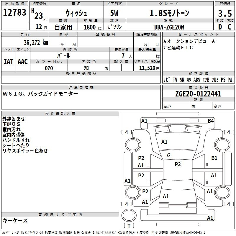 Toyota Wish, 2011 года - Лот№12783 ★3.5