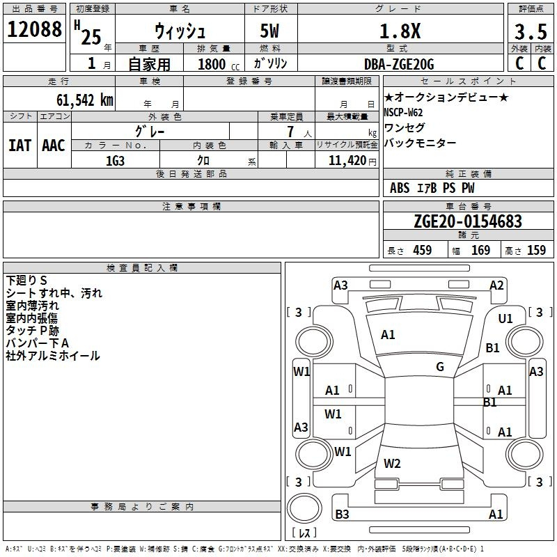 Toyota Wish, 2013 года - Лот№12088 ★3.5