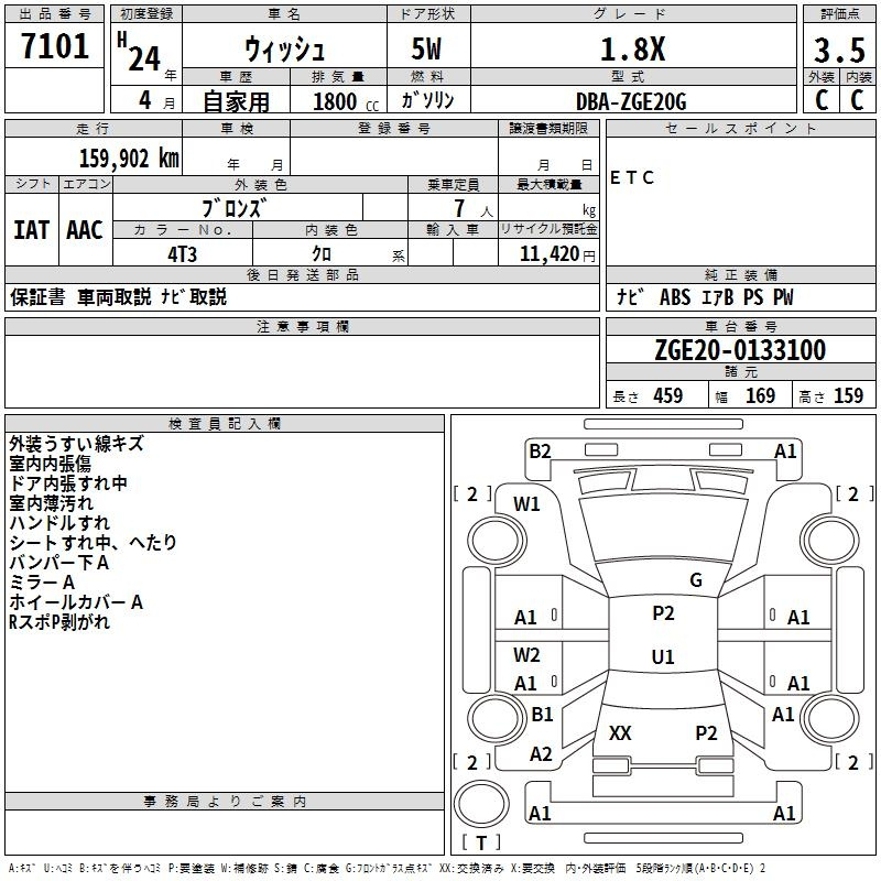 Toyota Wish, 2012 года - Лот№7101 ★3.5