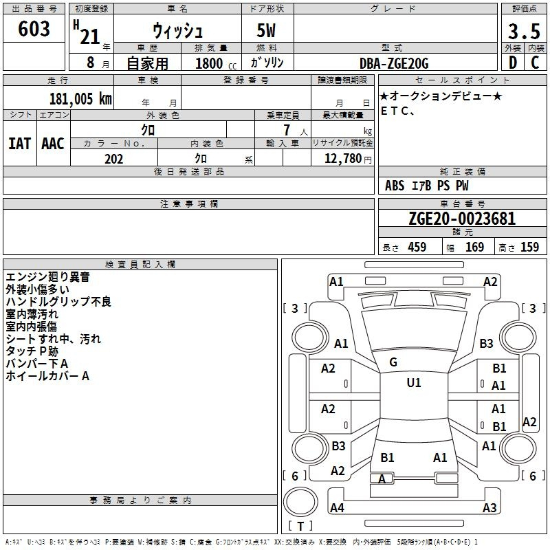 Toyota Wish, 2009 года - Лот№603 ★3.5