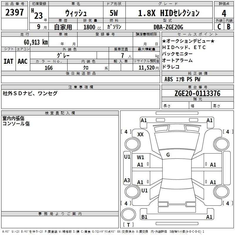 Toyota Wish, 2011 года - Лот№2397 ★4