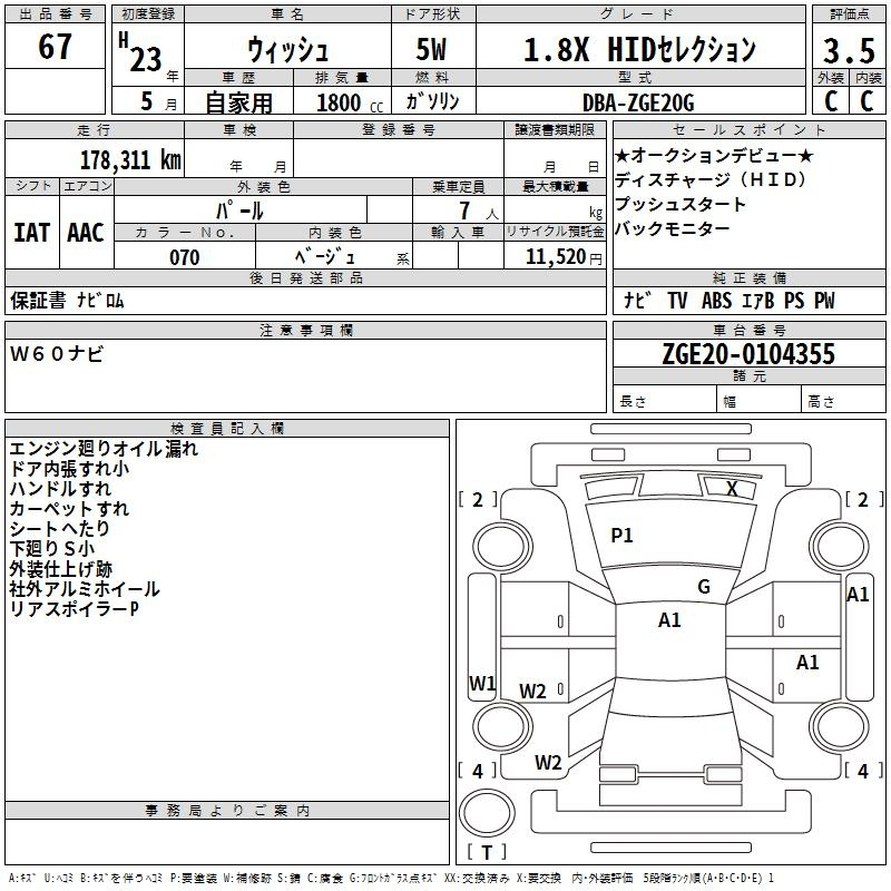 Toyota Wish, 2011 года - Лот№67 ★3.5