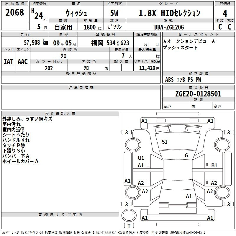 Toyota Wish, 2012 года - Лот№2068 ★4