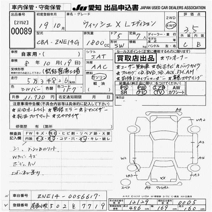 Toyota Wish, 2007 года - Лот№89 ★3.5