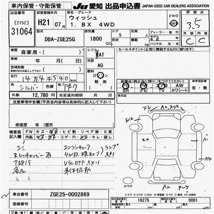 Toyota Wish, 2009 года - Лот№31064 ★3.5