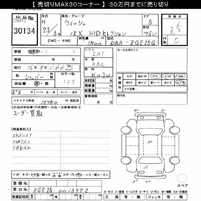 Toyota Wish, 2011 года - Лот№30134 ★3.5
