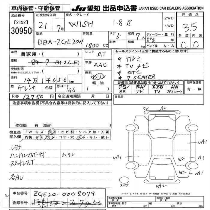Toyota Wish, 2009 года - Лот№30950 ★3.5