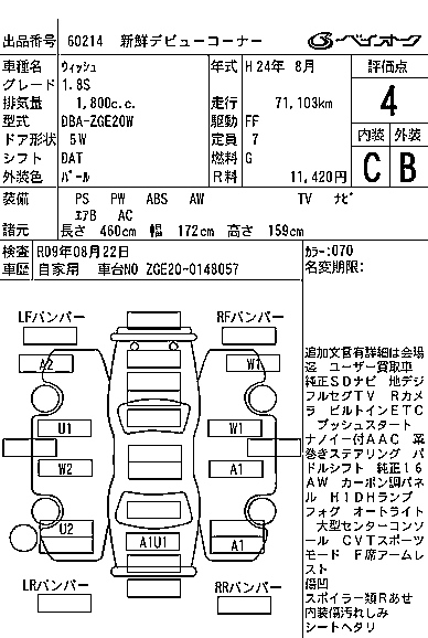 Toyota Wish, 2012 года - Лот№60214 ★4