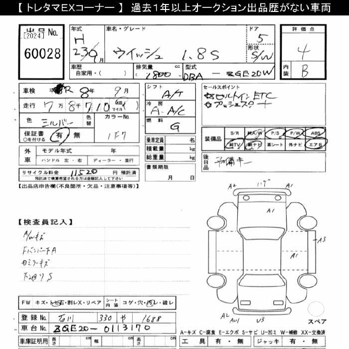 Toyota Wish, 2011 года - Лот№60028 ★4