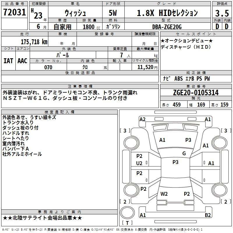 Toyota Wish, 2011 года - Лот№72031 ★3.5