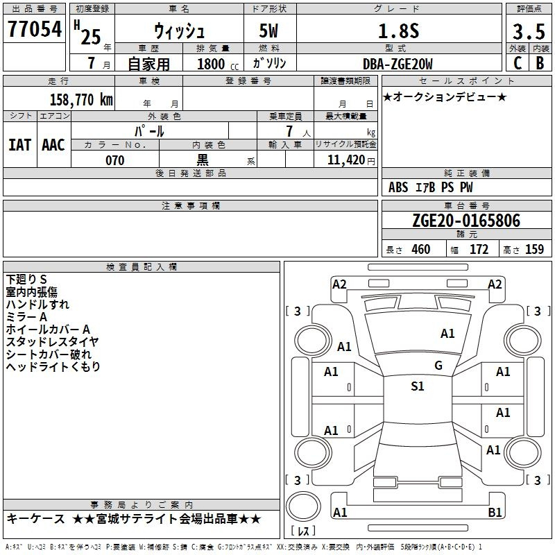 Toyota Wish, 2013 года - Лот№77054 ★3.5
