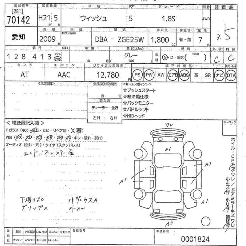 Toyota Wish, 2009 года - Лот№70142 ★3.5