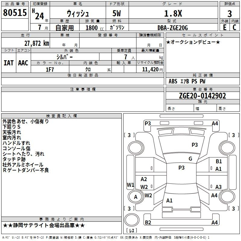 Toyota Wish, 2012 года - Лот№80515 ★3