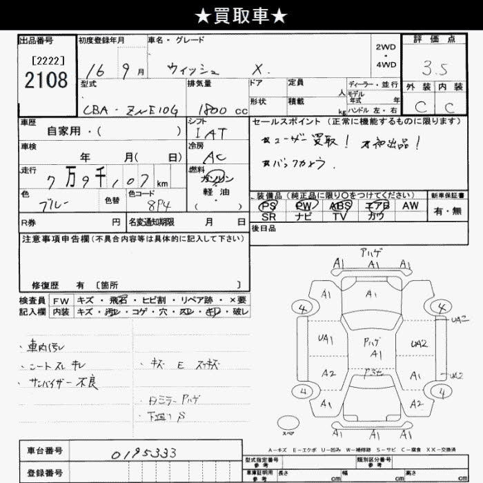 Toyota Wish, 2004 года - Лот№2108 ★3.5