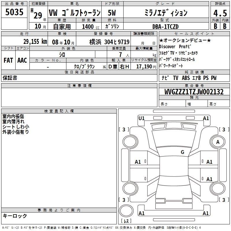 Volkswagen Golf touran, 2017 года - Лот№5035 ★4.5