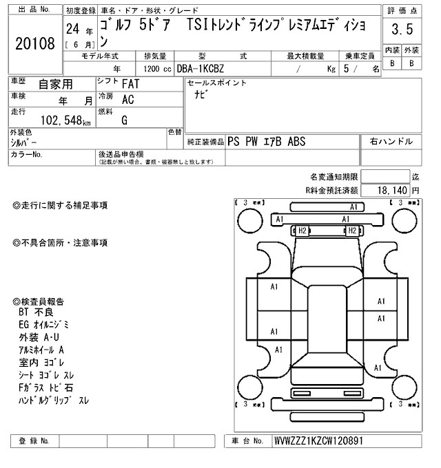 Volkswagen Golf, 2012 года - Лот№20108 ★3.5