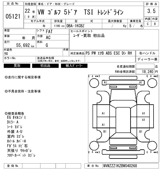 Volkswagen Golf, 2010 года - Лот№5121 ★3.5