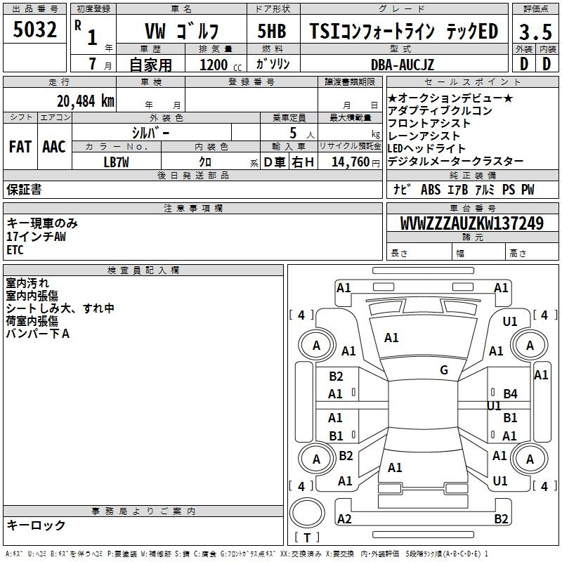 Volkswagen Golf, 2019 года - Лот№5032 ★3.5