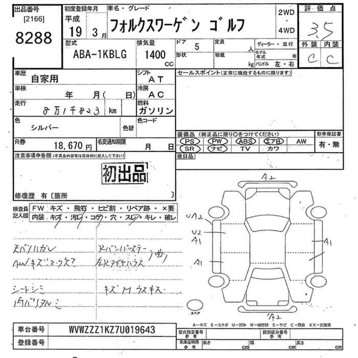 Volkswagen Golf, 2007 года - Лот№8288 ★3.5