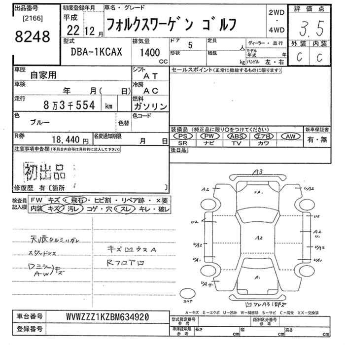 Volkswagen Golf, 2010 года - Лот№8248 ★3.5
