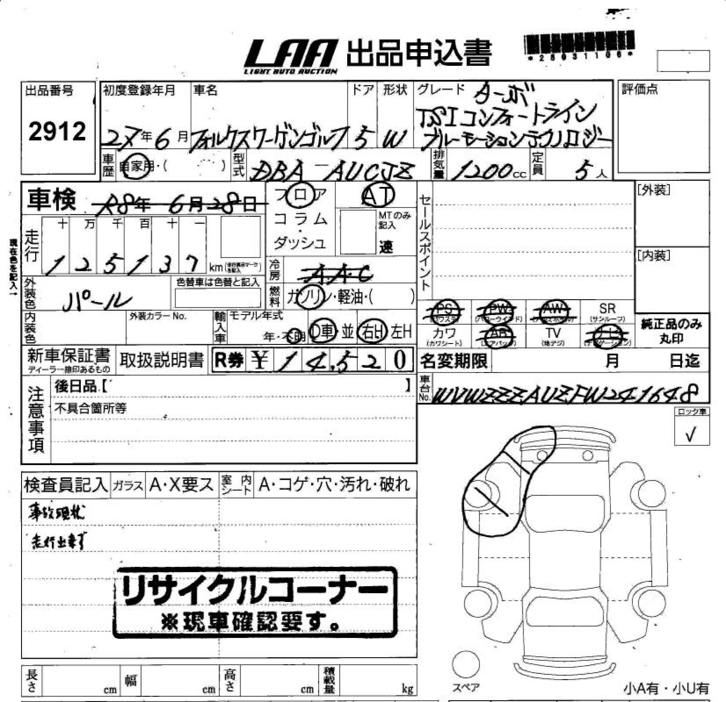Volkswagen Golf, 2015 года - Лот№2912 ★