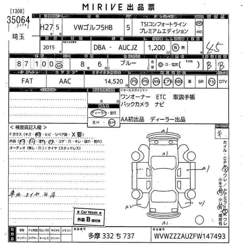 Volkswagen Golf, 2015 года - Лот№35064 ★4.5