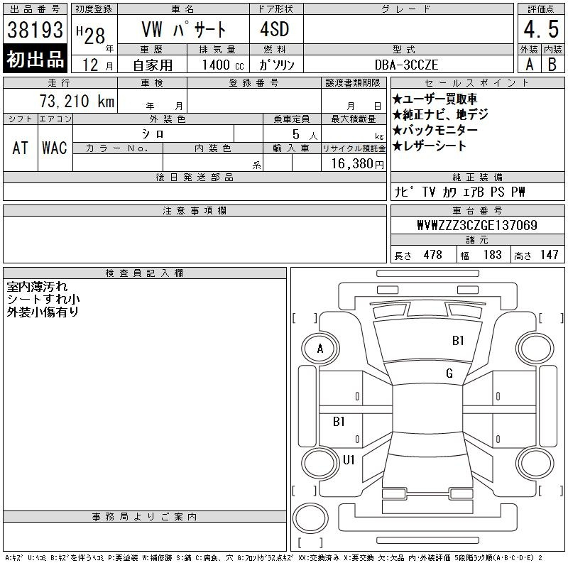 Volkswagen Passat, 2016 года - Лот№38193 ★4.5