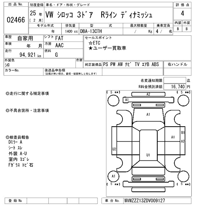 Volkswagen Scirocco, 2013 года - Лот№2466 ★4