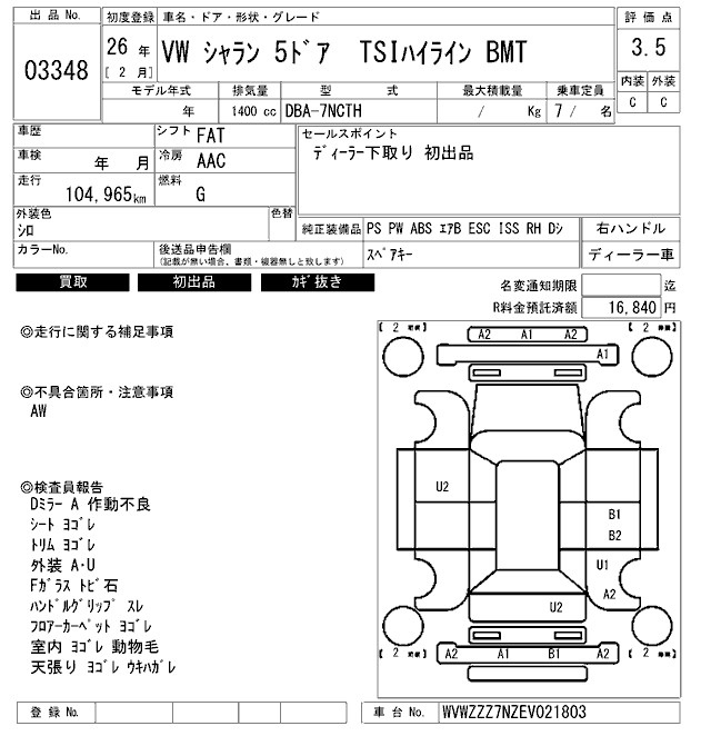 Volkswagen Sharan, 2014 года - Лот№3348 ★3.5
