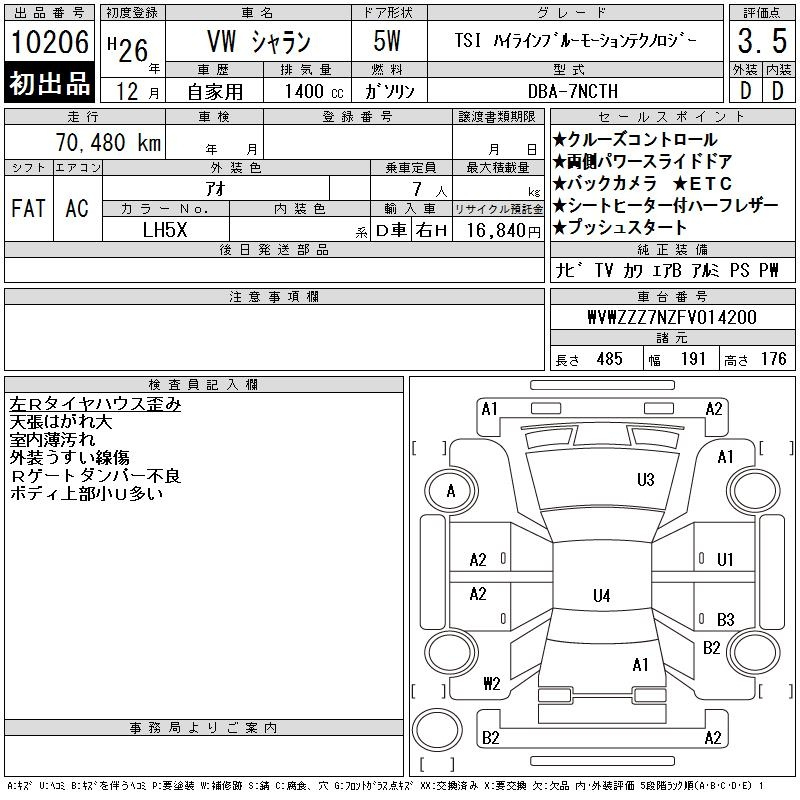 Volkswagen Sharan, 2014 года - Лот№10206 ★3.5