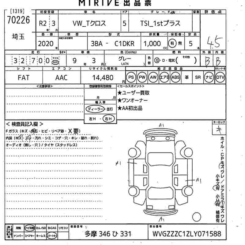 Volkswagen T-cross, 2020 года - Лот№70226 ★4.5
