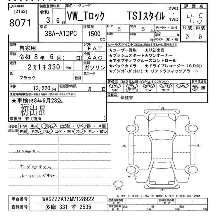 Volkswagen T-roc, 2021 года - Лот№8071 ★4.5