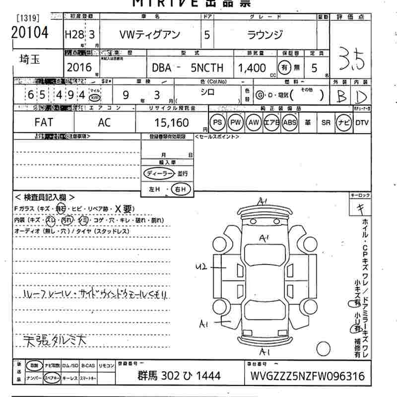 Volkswagen Tiguan, 2016 года - Лот№20104 ★3.5