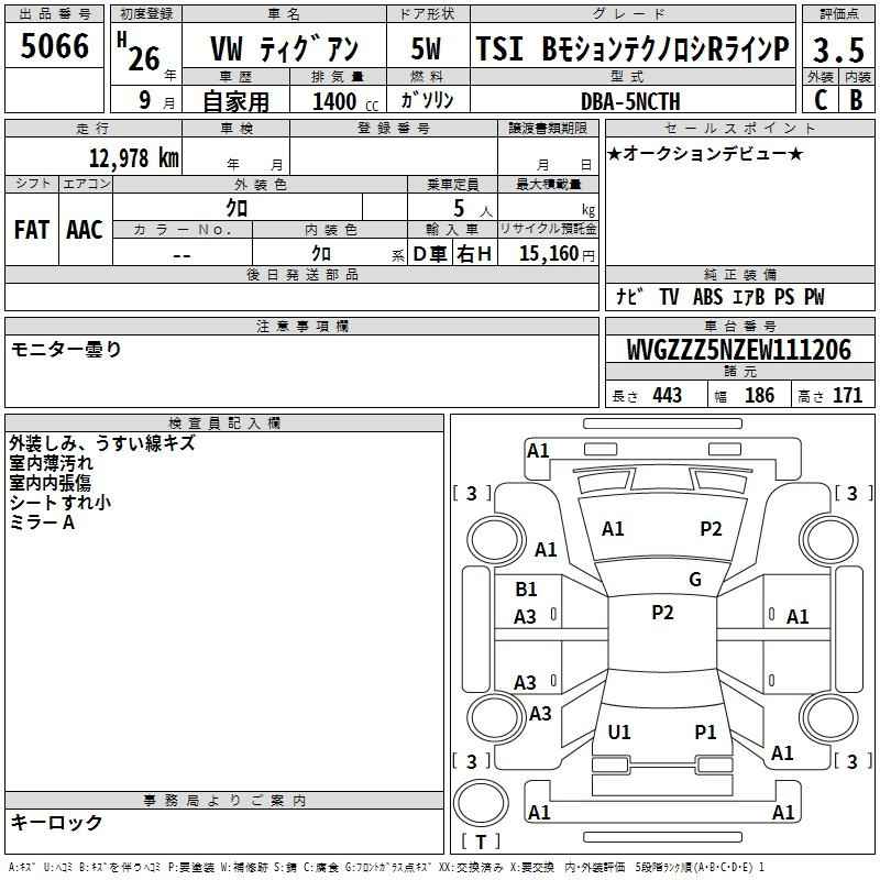 Volkswagen Tiguan, 2014 года - Лот№5066 ★3.5