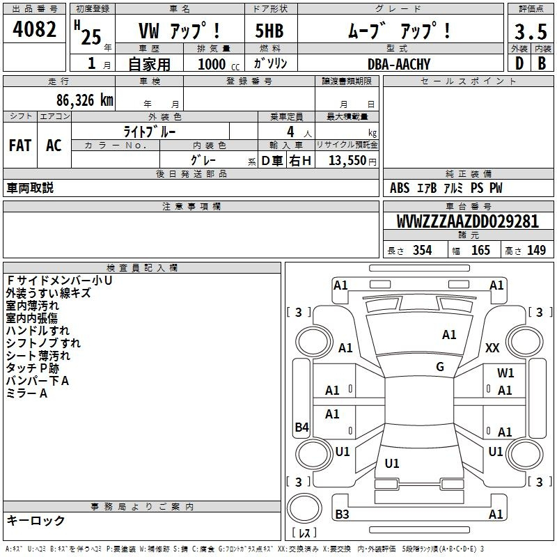 Volkswagen Up, 2013 года - Лот№4082 ★3.5