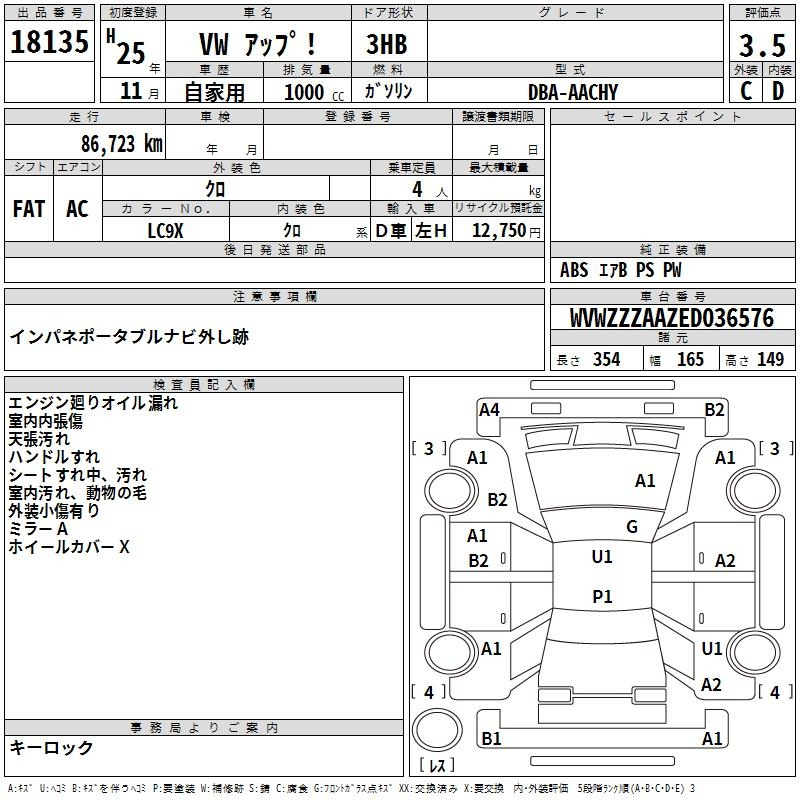 Volkswagen Up, 2013 года - Лот№18135 ★3.5