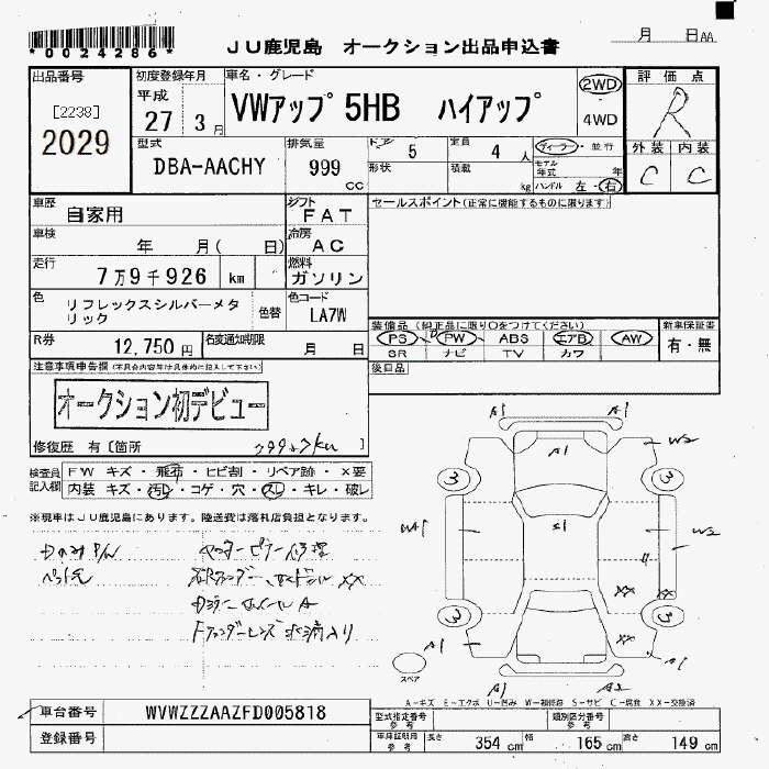 Volkswagen Up, 2015 года - Лот№2029 ★R