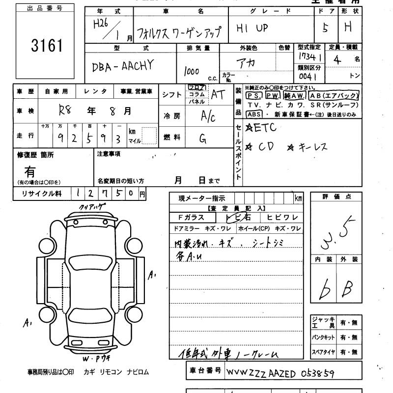 Volkswagen Up, 2014 года - Лот№3161 ★3.5