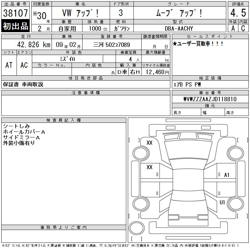 Volkswagen Up, 2018 года - Лот№38107 ★4.5