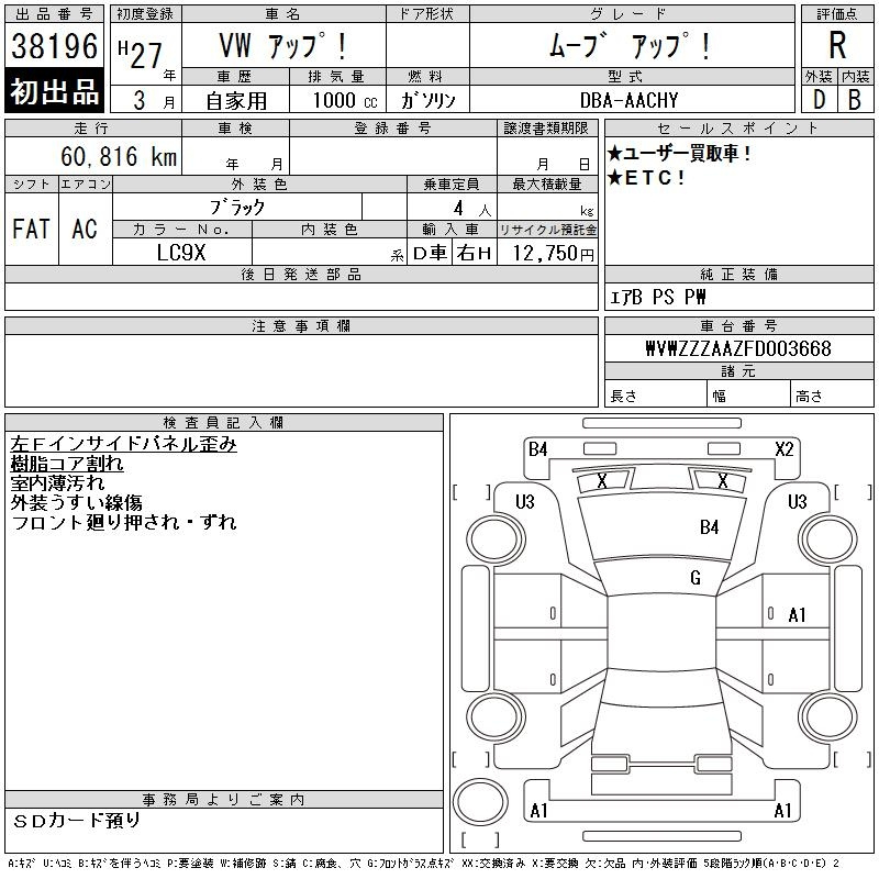 Volkswagen Up, 2015 года - Лот№38196 ★R