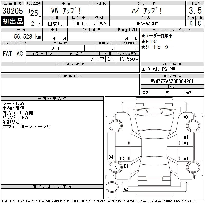 Volkswagen Up, 2013 года - Лот№38205 ★3.5