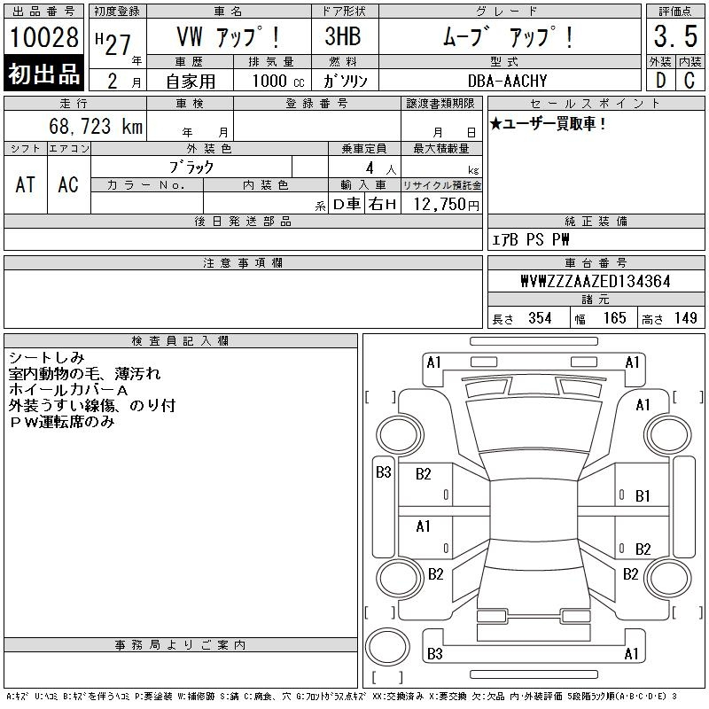 Volkswagen Up, 2015 года - Лот№10028 ★3.5