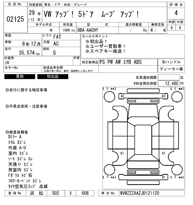 Volkswagen Up, 2017 года - Лот№2125 ★4