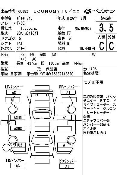 Volvo V40, 2014 года - Лот№82 ★3.5