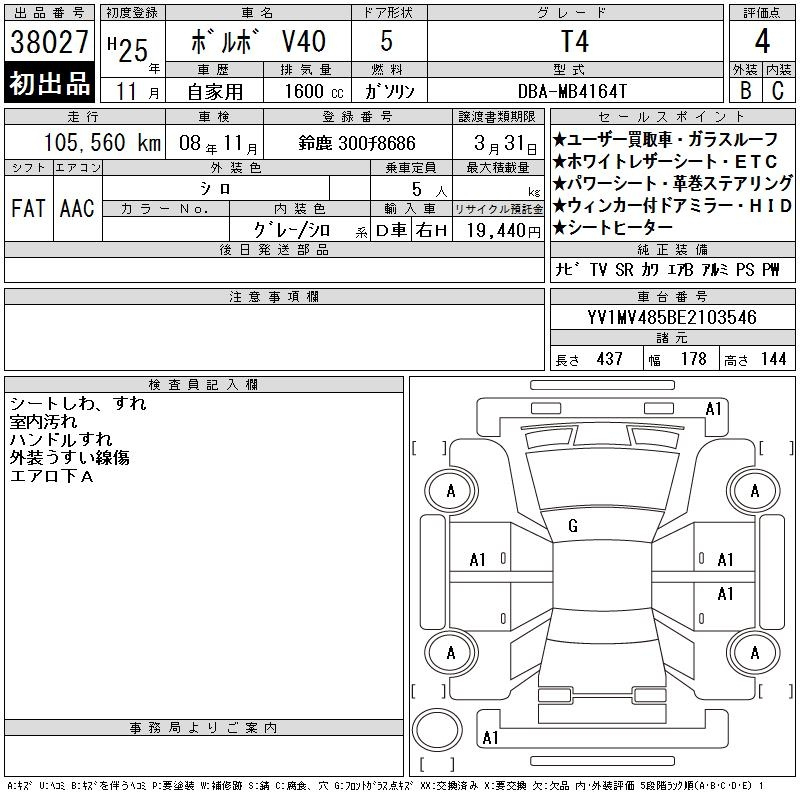 Volvo V40, 2013 года - Лот№38027 ★4