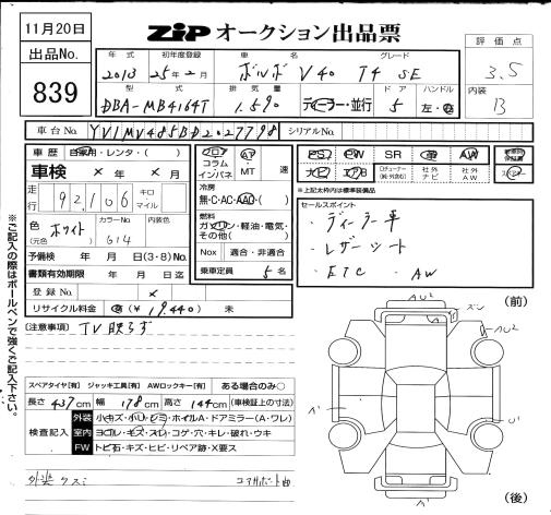 Volvo V40, 2013 года - Лот№839 ★3.5