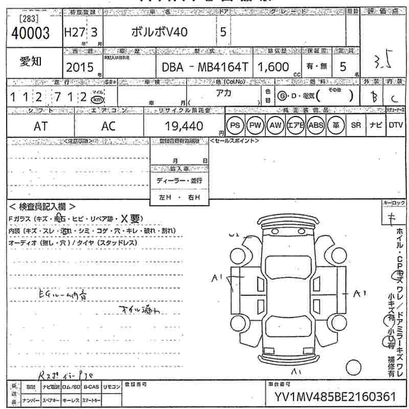 Volvo V40, 2015 года - Лот№40003 ★3.5