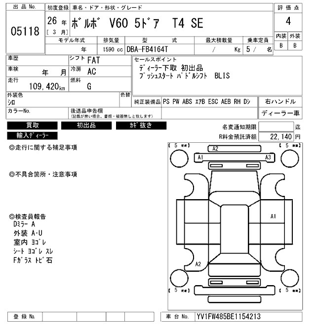 Volvo V60, 2014 года - Лот№5118 ★4