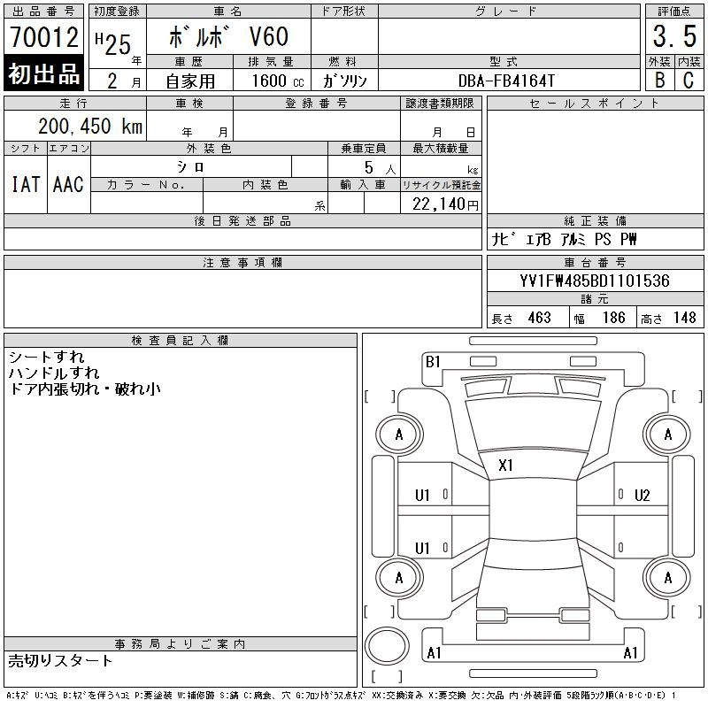 Volvo V60, 2013 года - Лот№70012 ★3.5